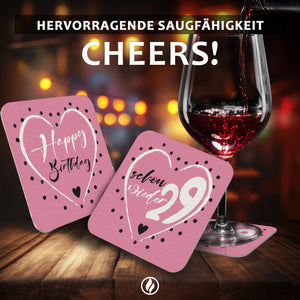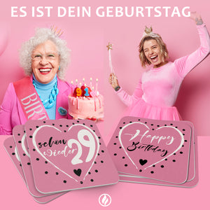 50 Bierdeckel Geburtstag, Schon wieder 29 Herz, Schon wieder 29 Pink