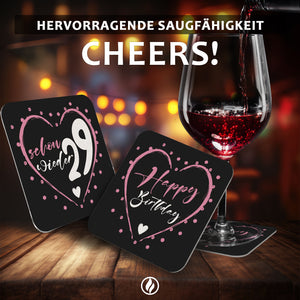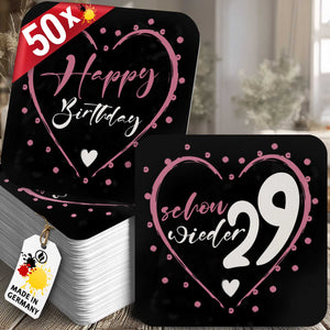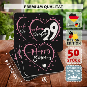 50 lustige Bierdeckel Geburtstag schwarz pink Schon wieder 29 Party Deko Untersetzer