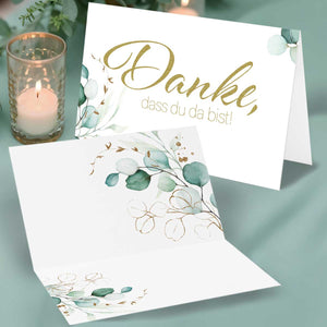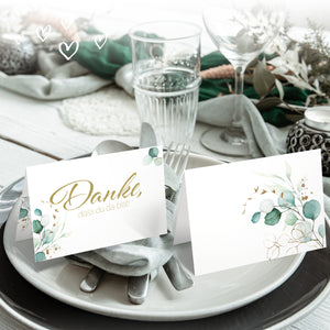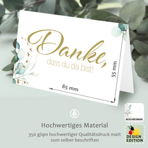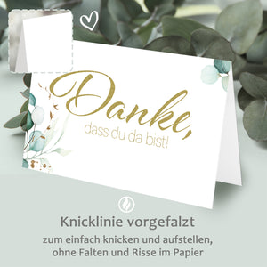 50 Tischkarten Danke, dass du da bist - Greenery Efeu Eukalyptus Gold - Danke