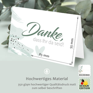 50 Tischkarten Danke, dass ihr da seid - Art Mood Mint Green - Dankeskarten Gäste
