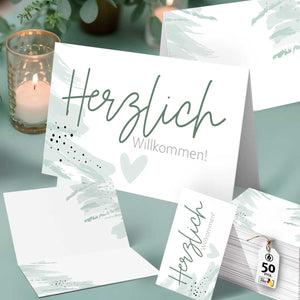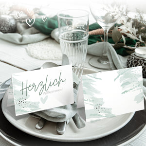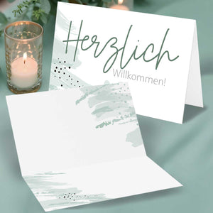 50 Tischkarten Herzlich willkommen - Art Mood Mint Green