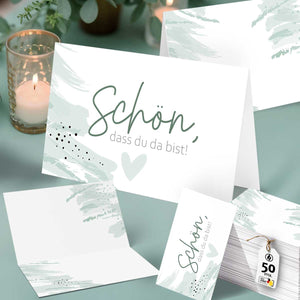 50 Tischkarten Schön, dass du da bist, Art Mood Mintgrün