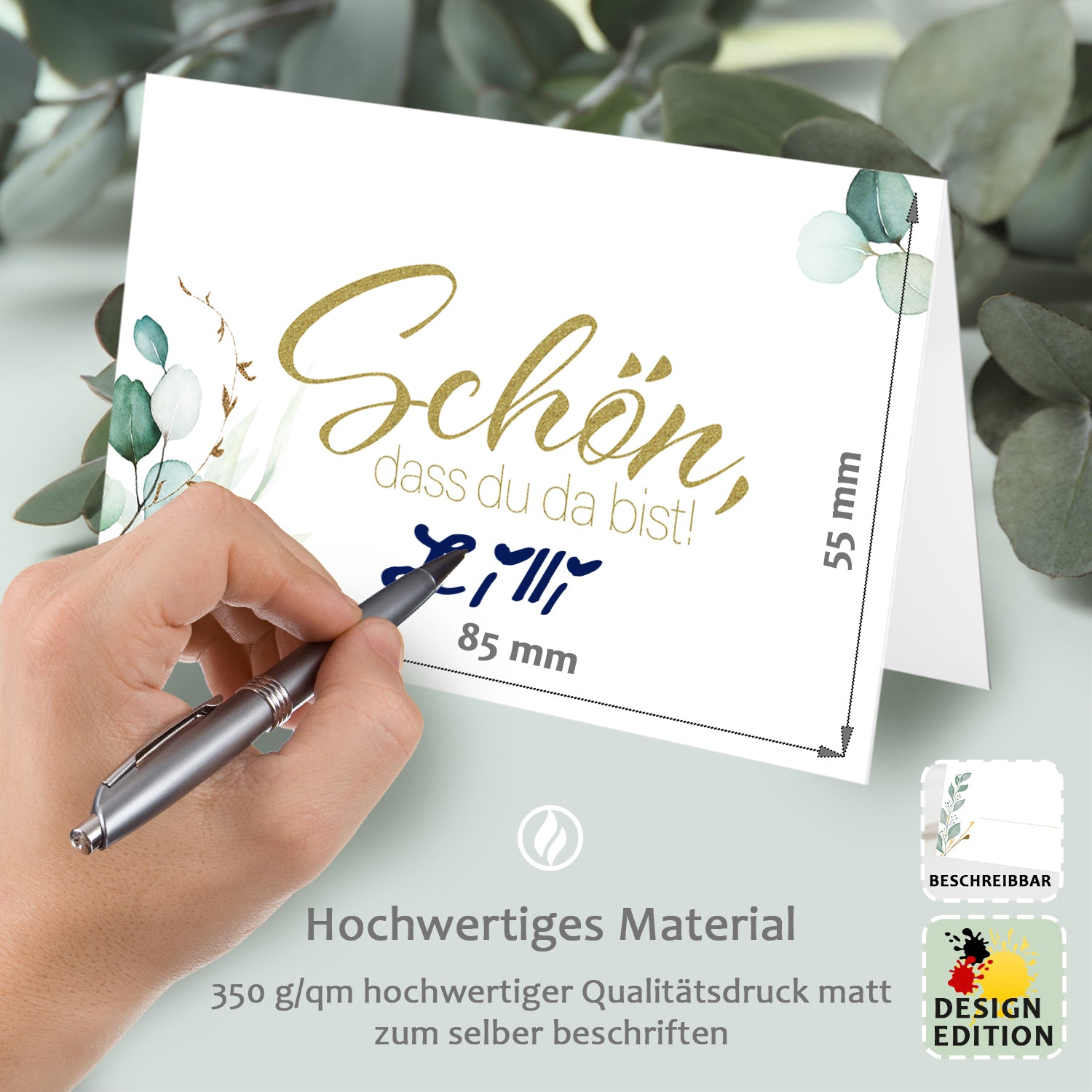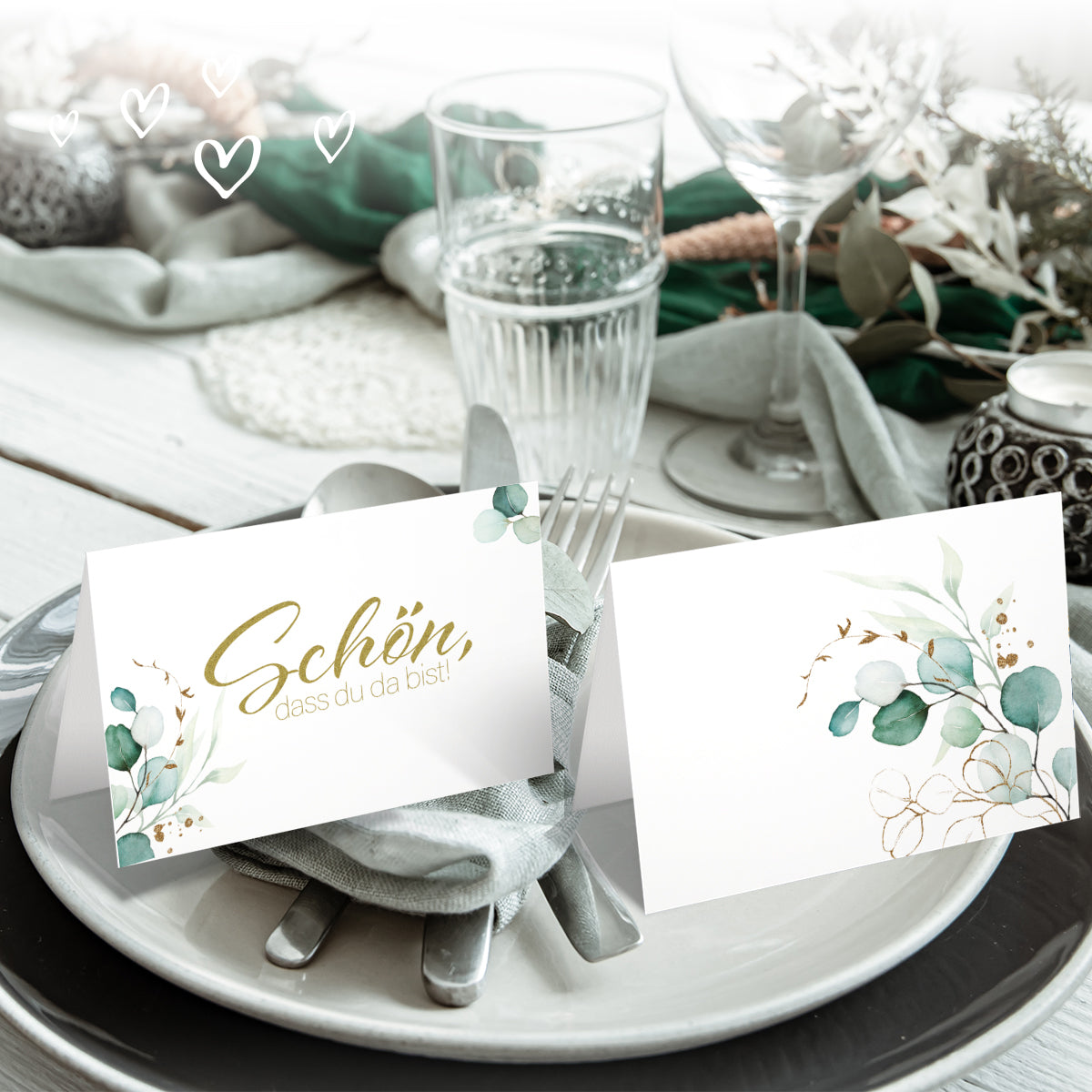 Ob als Tischkartenset für die Hochzeit, Kärtchen für die Taufe oder als Schön, dass du da bist Karte für Firmen-Events – schenken Sie Ihren Gästen einen herzlichen Empfang und eine harmonische Atmosphäre.