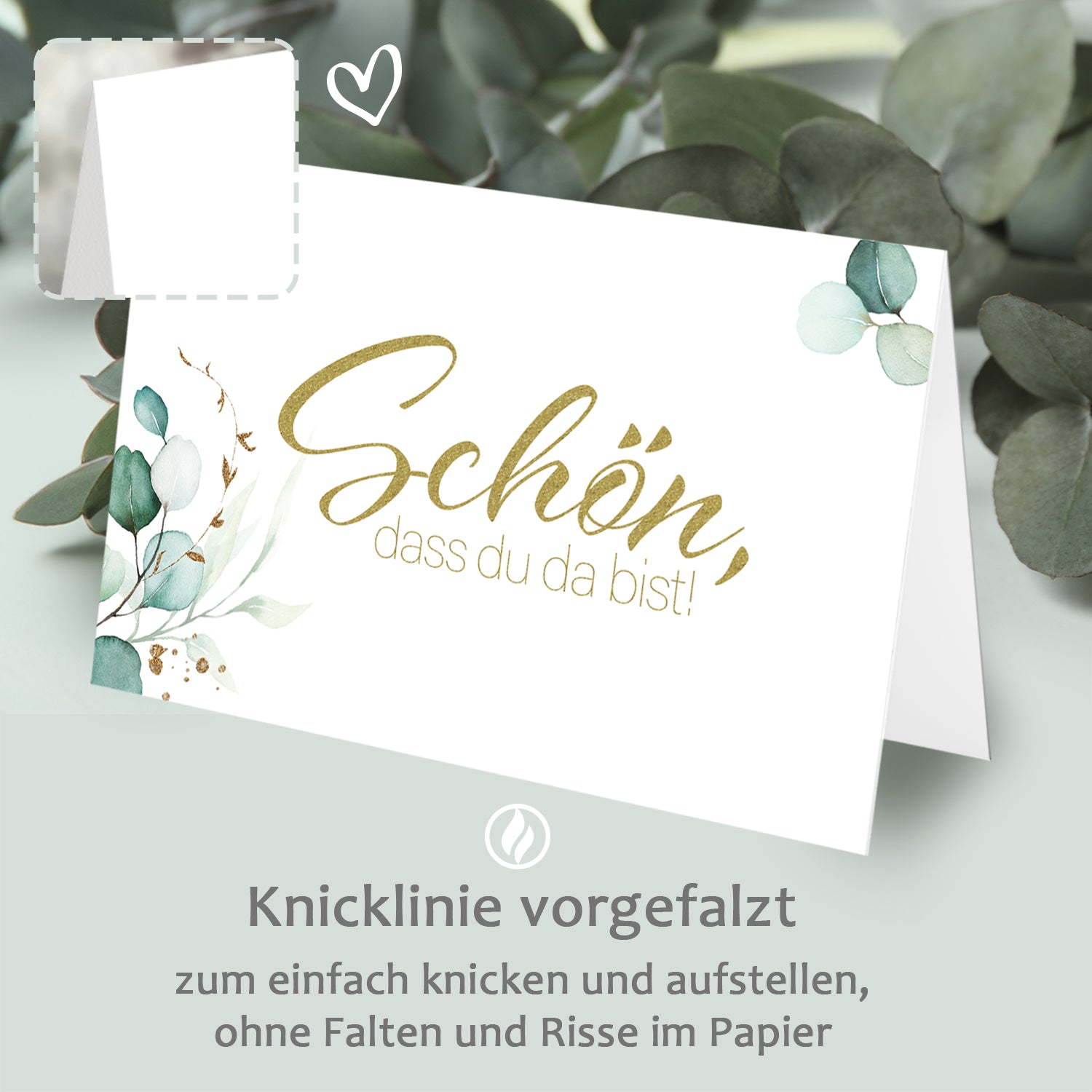 Als Produkt von Funke & Brand – einem Familienbetrieb mit Herz – stehen diese Tischkarten für feinsinnige Papeterie und stilvolle Gastfreundschaft. Setzen Sie auf Tischkarten Hochzeit, Platzkarten Eukalyptus oder Namenskarten grün – perfekt für den Greenery-Trend und eine elegante Tischdeko.