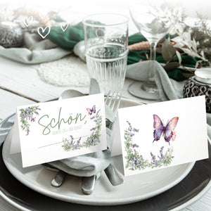 50 Tischkarten Schön, dass du da bist, Floral Butterfly Lavendelgrün