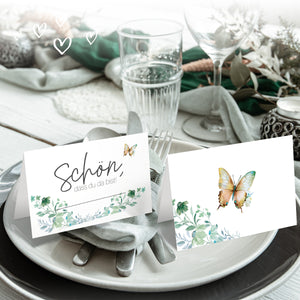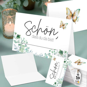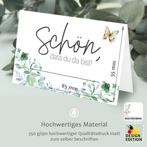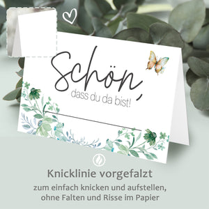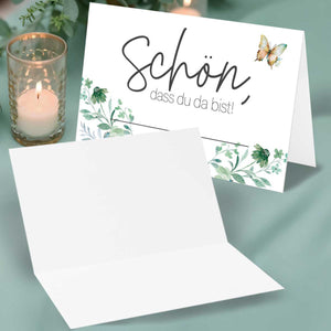 50 Tischkarten Schön dass du da bist salbeigrün floral elegant für Hochzeit Geburtstag Event