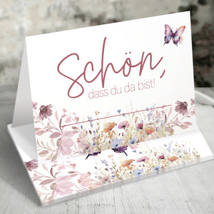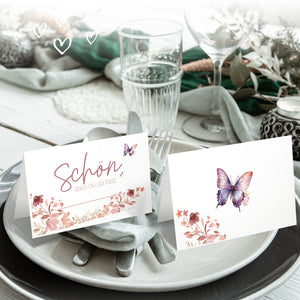 50 Tischkarten Hochzeit Schön dass du da bist florales Design mit Blumen Schmetterling