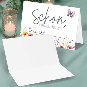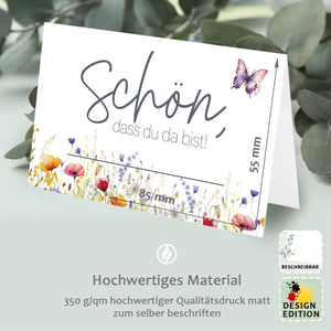50 Tischkarten Schön dass du da bist florales Design Schmetterling Hochzeit Tischdeko