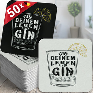 Bierdeckel Gin – 50er Set "Gib deinem Leben einen Gin", Humorvolles Design mit Zitronenscheibe