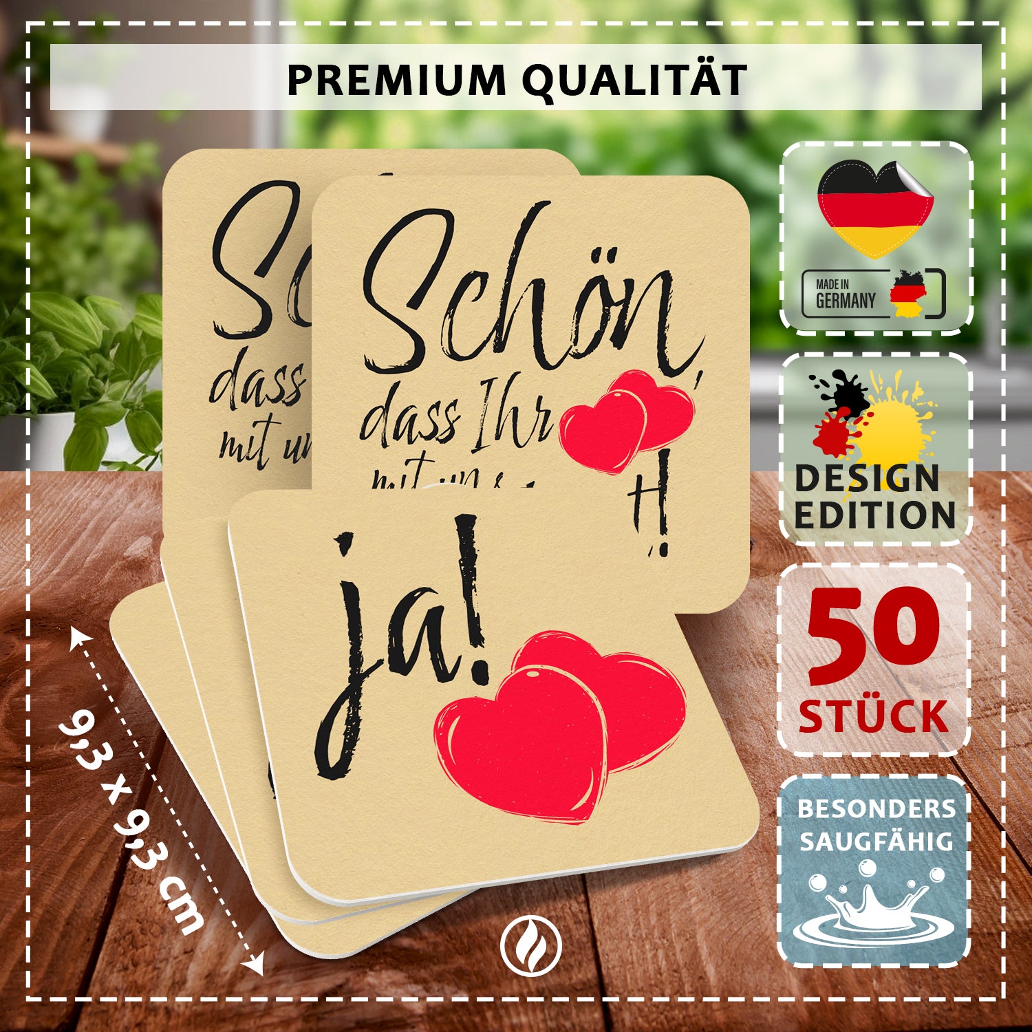 50 Bierdeckel Hochzeit Schön dass du da bist - Romantische Tischdeko Untersetzer