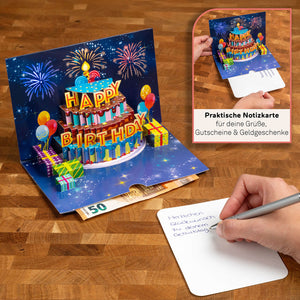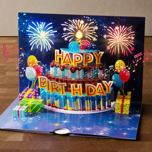 Buntes Geburtstagsfeuerwerk mit Musik & Licht Pop-Up Karte