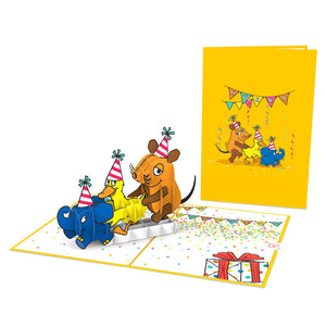 Feiere den Geburtstag mit der kultigen orangenen Maus, dem blauen Elefanten und der gelben Ente aus der Sendung mit der Maus – unsere Geburtstagspolonaise Pop-Up Karte sorgt garantiert bei jedem Geburtstag für strahlende Augen und offene Münder!