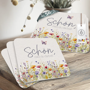 50 Bierdeckel Schön dass du da bist, Floral Butterfly Wildblumen