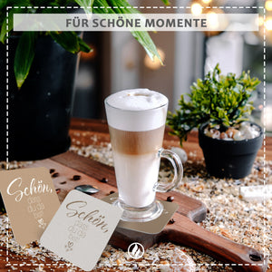 Die liebevoll gestalteten Untersetzer vom Familienbetrieb Funke & Brand vereinen praktische Funktionalität als zuverlässige Glasuntersetzer mit einer emotionalen Botschaft, die Wertschätzung und Zugehörigkeit vermittelt. Ideal als Gastgeschenk oder Tischdeko machen sie aus jedem gedeckten Tisch ein stimmungsvolles Highlight.