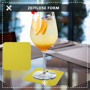 50 Bierdeckel gelb quadratisch einfarbig, Sommerfest Deko Gelb