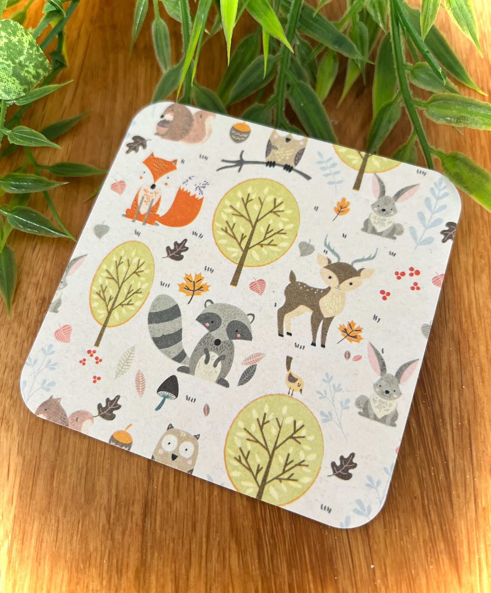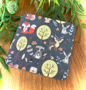🍀 Untersetzer mit süßen Tiermotiven: Fuchs, Hase, Reh, Eichhörnchen und Eule im Waldtiere-Design - Sie eignen sich ideal als Unterlage für Gläser, Tassen, Becher, Dosen, Öl Flaschen, Vasen, Blumentöpfe und vieles mehr