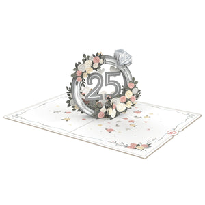 Feiere die Liebe und das Zusammenleben des glücklichen Paars mit unserer Pop-Up Karte zur Silberhochzeit und sorge für eine unvergessliche Überraschung!