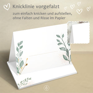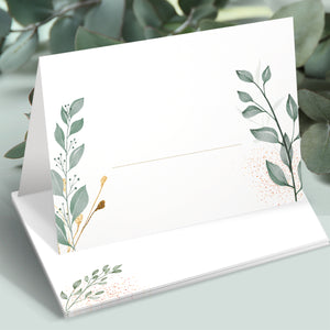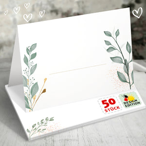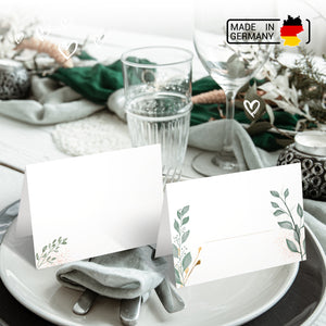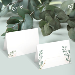 50 Tischkarten Eukalyptus florales Design, Hochzeit Grün Gold