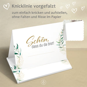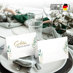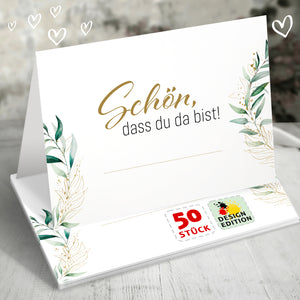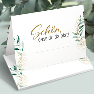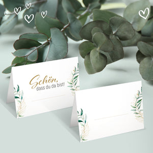 50 Tischkarten Hochzeit Eukalyptus Floral Goldakzente Schön dass du da bist Deko