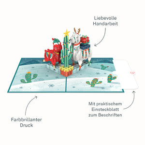 Handgemachte Pop Up Karte Weihnachtslamas mit 3D-Effekt