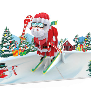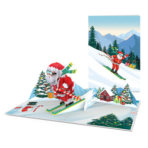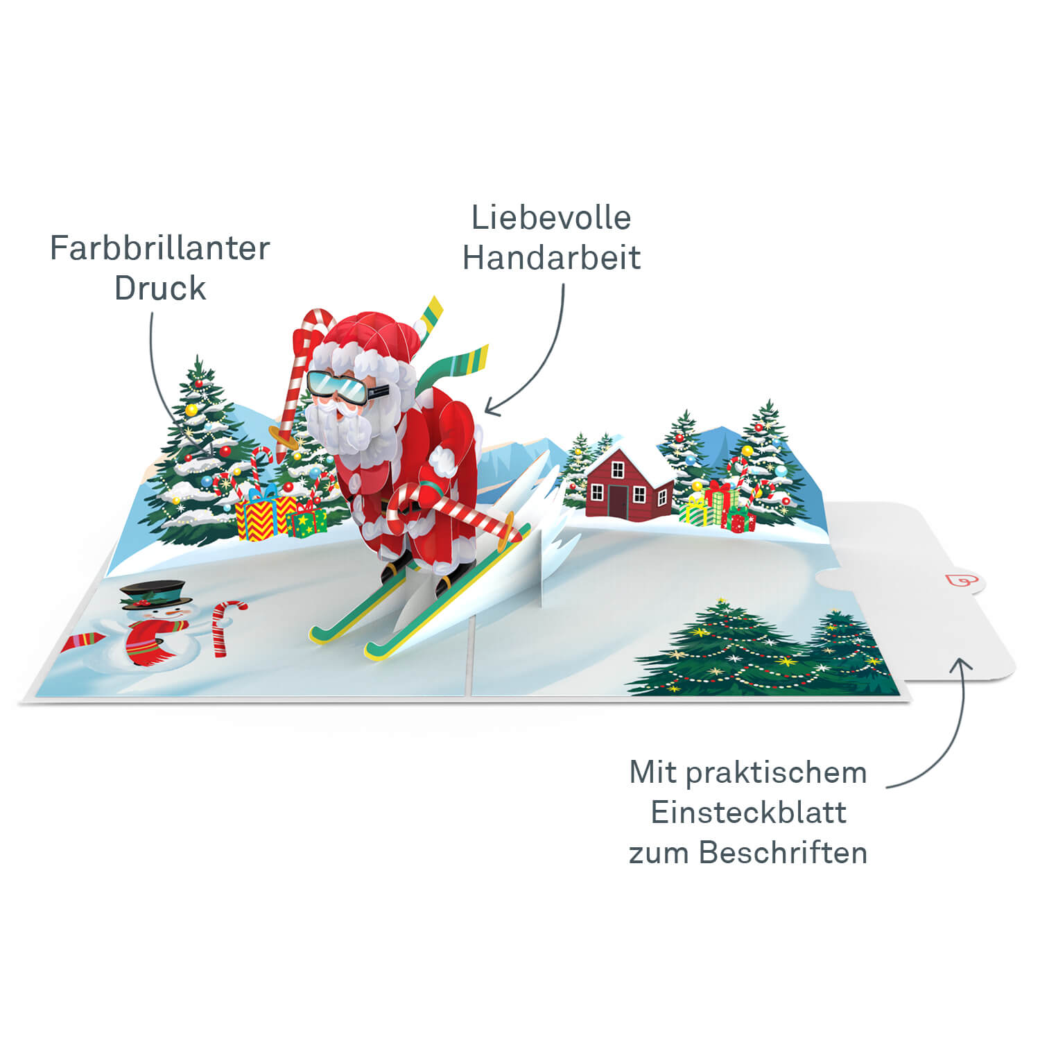 Weihnachtsmann auf Skiern Pop-Up Karte