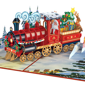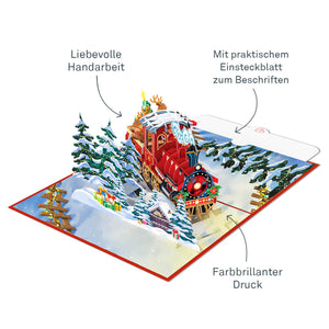 Handgemachte Pop-Up Karte Weihnachtszug mit 3D-Effekt