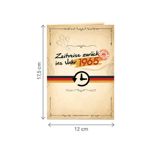 Ob für einen guten Freund, Freundin, die Mutter oder der Vater, der Mann, die Frau oder Arbeitskollegen – diese Grußkarte verspricht eine originelle Zeitreise zurück ins Jahr 1965, die garantiert für Freude und ein herzhaftes Schmunzeln sorgt.