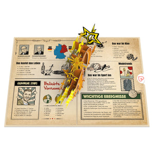 Lass den 40. Geburtstag unvergesslich werden mit unserer 3D Pop-Up Geburtstagskarte „Zurück ins Jahr 1985“! Beim Öffnen dieser einzigartigen Karte entfaltet sich eine beeindruckende „40“, die das Geburtsjahr des Jubilars zum Leben erweckt. Die Karte enthält spannende Fakten, humorvolle Anekdoten und interessante Informationen, die einen unterhaltsamen Rückblick ins Jahr 1985 bieten.